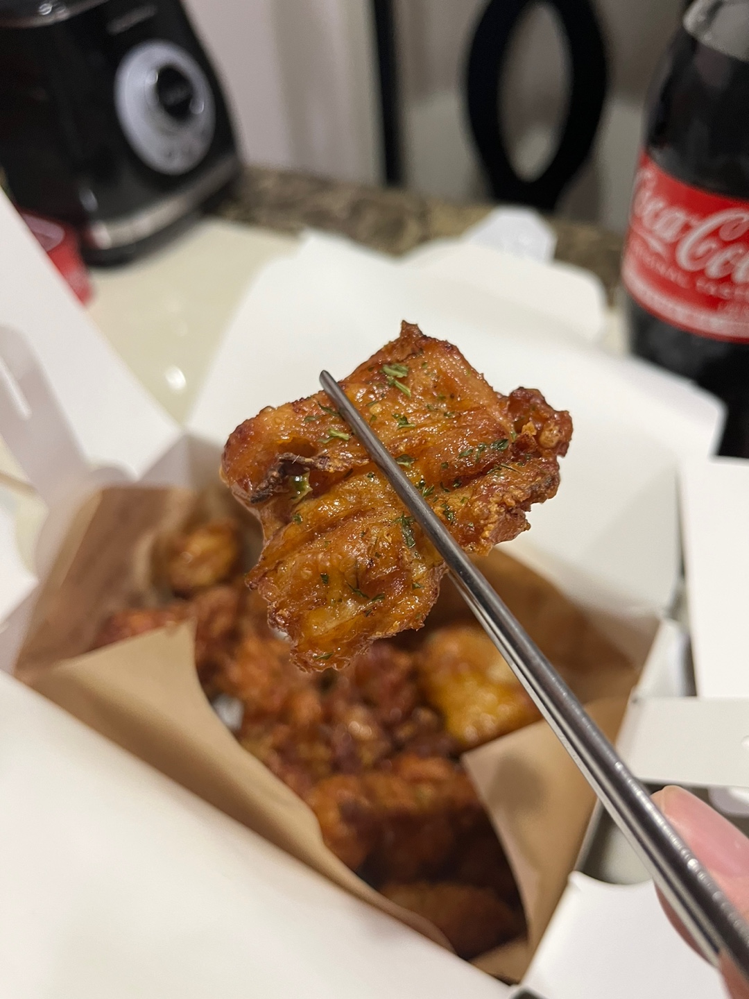 흠... 오븐 베이스 느낌의 후라이드 느낌이고 닭다리 살로 이용하여